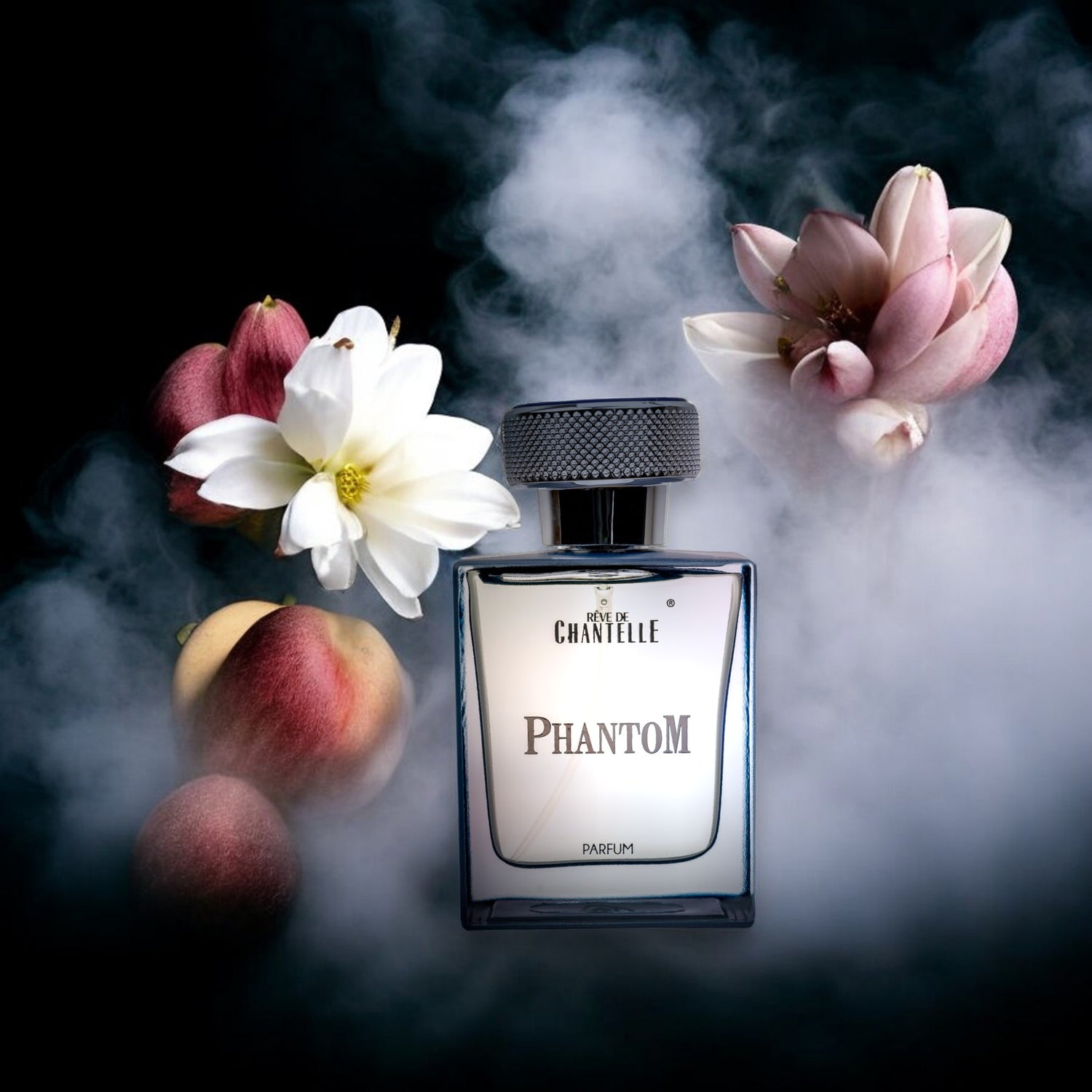 Phantom se abre con una vibrante mezcla de bergamota, durazno y lichi, ofreciendo un golpe fuerte y afrutado que cautiva instantáneamente los sentidos. Esta apertura evoluciona hacia un corazón floral que entrelaza los susurros románticos del jazmín y la magnolia con los aromas exóticos de la flor de naranjo y el lirio de agua.